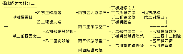 乙初顯說般若。(分四)丙初因人顯法。丙二正示法空。丙三依法修證。丙四結讚功德。