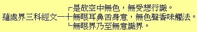 是故空中無色無受想行識無眼耳鼻舌身意無色聲香味觸法無眼界乃至無意識界