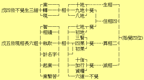 始覺四位,亦可云五位,滅、異、住、生四相,開為五位,加一根本無明,須等覺破除,即成佛果位,此論合於十地中,而成四位。