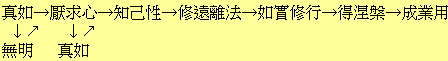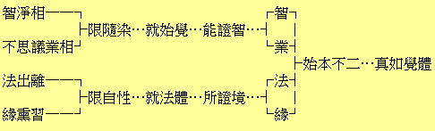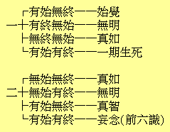 若以無明為有始,則如論者所說,雖又能入迷,但無真前妄後之理,無明是無始的存在。因為是無始,故一度斷絕,不會生起而再迷。何則?因為真如的起動,是他動的,非自動的。即須待無明之緣,方始起動也。然無明乃無始的存在,故為迷的第一原因,除此以外無可根據之物。今斷滅此第一原因的無明而得佛果,則可達於出纏無垢真如,已無可起動之緣,故無再度迷入生死輪迴之理。最後附記的一難是:若以無明為無始,則無明亦像真如那樣無終;無明無終,則無成佛之期。答曰:若靠近真如絕對(非異門)的一邊,則不見真妄的區別,故當然是無終的。並非特地作為妄法而論始終。若靠近生滅相對(非一門)的一邊,則真妄全然有區別,真如為本體界,無明為現象界;真如是真實,無明是虛妄。故無體即空的虛妄法得以斷滅,成為無始有終,於是成佛之義成立矣。