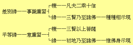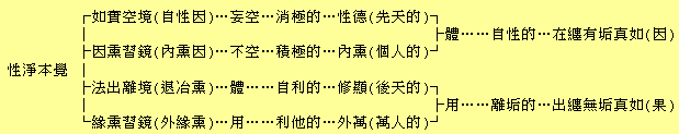 以上全是大寶的意見。要之,賢首就性分而言無始的無明中有厚薄。淨影則就行相而言無始無明無厚薄。無非是試作和會折衷耳。