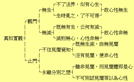 再下文:「又煩惱生死,畢竟無體,求不可得」,再說世間的煩惱生死。煩惱歸納起來有五類,叫五住煩惱;生死歸納有二,分段生死與變異生死,這煩惱生死,也是以一實境界,法性為體;離開一實境界,別無自體可得,所以說畢竟無體,求不可得。「本來不生,實更無滅,自性寂靜,即是涅槃。」既無自體,故本來就沒有生。既沒有生,那會有滅。既也沒有滅,所以說自性寂靜,不起妄惑,就是涅槃,沒有另外涅槃可得,這是一中一切中,空、假皆中,依於圓融中諦說的。