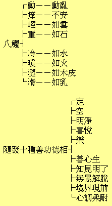 這第七次第相,就是由除疑惑信解,得安慰,進到當下得勝精進的境界,這種境界就是意之所專,與真空理體,少分相應,並且自亦覺知利益之相。有如修安般的,從未到定,泯然虛豁,失於欲界之身,開始證初襌八觸,(見後表)隨發一觸,就有十種善功德相(見後表)隨之生起,所以說少分相應,覺知利益相。乃至修體真止的,發得初襌,與法空之理,少得相應,到了這樣程度。