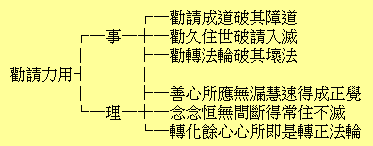 前一段經文引述佛說的話,以顯末世眾生所遭受痛苦,亟待拯救,但拯救必須遇有可以拯救的因緣,如果不遇因緣,佛也沒有辦法。這裏所說的因緣,用現代語來說,就是條件與機會,而條件與機會,也是由於宿生善根的造成。所謂宿生善根者,就是宿生做善的心理基礎,有了宿生做善的心理基礎,就容易與今生的善法相應,也就容易接受善法。所以說眾生要想脫苦得度,必須具有深厚善根。但是我們看看末法時期眾生的善根是怎麼樣呢?可以說大部份善根都很微少,因為若具有深厚的善根,除了乘願再來的大菩薩以外,就不會生在這無佛的時代了。雖然如此,但僥倖還有微少善根,可以與佛法接近聽到佛法,還有得度機會。佛菩薩度生,原本大慈大悲,只要有稍微得度機緣,也不輕易放過。所以堅淨信菩薩,善體佛意,在引述佛說的話以後,就代表大家請問說:「我今為此未來惡世,像法向盡,及末法中有微少善根者,請問如來。」(如來,是佛十種德號之一,含義很廣,簡單說就是來去能自如的意思。)「設何方便,開示化導,令生信心,得除衰惱」,所謂方便者,方是方法,便是便利,用便利的方法引眾生入道,就是方便。經文的意思是說,度化這末法時期的眾生,應該採取何等樣他們感覺到便利而又容易接受的方法,來開示他們,化導他們,使他們對至高無上的佛法生起信心來,得能除去他們所受衰敗惱亂的遭遇呢?說到這裏或許有人要問,說法就直接說法就是了,為什麼還要請求方便呢?因為末法時期眾生,在心理上善根少,五欲六塵的煩惱影子多,若直講斷五欲,離煩惱,求涅槃,證佛果的大道理,與他心理上不合,因此也就不容易接受,必得採取合於他攀緣五欲六塵心理的方法,使他在心理上容易與道接近,這樣才容易接受,這就是方便。若是對煩惱少善根很多的大機眾生,自然也就無須多大的方便了。這在下面經文內講的很明白:「以彼眾生,遭值惡世,多障礙故,退其善心」。因為末法時期那些眾生,遭逢惡濁世界很多的障礙因緣,以致使他心理上煩惱增多,由於煩惱增多,惡心就增長,善與惡在心理上不能並存,惡心增長,善心就自然退失,善心退失,自然對事理不明,對事理不明,自然對佛法因果,就不易相信。如下文:「於世間出世間因果法中,數起疑惑,不能堅心專求善法」,世間出世間因果法,就是佛成道後,初次所講的四諦法,就是人生四大真理,「苦」、「集」、「滅」、「道」。這四大真理,下文有詳細解釋,這裏先不必要細講,可約略介紹。「苦」是人生世間所受的果報,是世間果;「集」是招感,苦果是怎麼來的,是自己造業招來的,這是世間因;「滅」是消滅,有痛苦就必須設法消滅,消滅了苦果,才能得樂果,這種樂果是超出世間的,所以叫出世果;「道」是修道,如何能消滅苦果變成樂果,就必須修道。出世樂果,因修道才能得,所以道是出世因。這四大真理,綜合起來說,就是世出世間因果。我們末世眾生煩惱障重,對這四層微妙的因果關係,是不容易相信的,所以就常常起疑惑。因此,對於能夠度人脫苦的世出世間因果善法,信心就不易堅定,信心不堅定,自然求之不專心,不專心就得不到,得不到就無法脫苦。所以下文堅淨信菩薩,以大慈悲心,沉重地接著說:「如是眾生,可愍可救」,像這類有微少善根眾生,不但善根少,而且障礙多,障礙多值得憐憫,善根少尚可救度,所以說可愍可救。「世尊大慈。一切種智」,這些可愍可度眾生,多疑難信,不是普通人容易度得了的,佛世尊你是具備大慈悲心的,而且具備了一切種類的大智慧。有大慈悲才能普度一切,有大智慧才能方便破疑,如果沒有具備佛的大慈大智,眾生善根雖有,也不易得度。「願與方便,而曉喻之,令離疑網,除諸障礙」,因此,願世尊為這些末世多疑少信眾生,開示一種既便利而又合乎末世眾生心理的方便方法,用這種方便方法來曉喻他們,使他們能夠離開迷惑之網,除去一切的障礙。心裏障礙既除,自然對真理就能通達接近,所以說「信得增長」趨向佛法的信心,就得以增長。「隨於何乘,速獲不退」,無論那一乘法門,如果沒有決定的信心,多會是半途而廢,不能達到究竟的目的。但只要是有了信心,經上曾告訴我們,「信為道源功德母,長養一切諸善根。」因信的力量,紮下了堅固的善根,有了堅固的善根,自然隨修那一種法門,信念就不容易動搖,信念不動搖,自然很快得到不退轉的程度。不退轉有三種:一、所修得的地位不退,二、所修持的功夫不退,三、修行的信念不退。以上堅淨信菩薩代眾發問,下文是佛答覆。