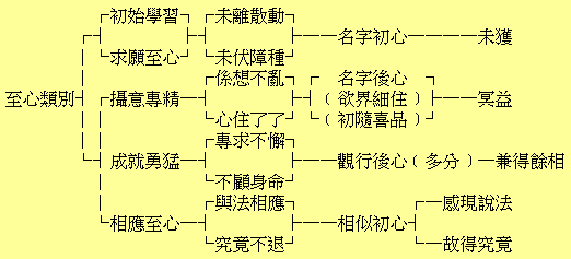 以上是名十種次第相門,收攝一切襌定行業,縱令修學唯心識觀,真如實觀,出世無相襌的,也必須具有這十種相門,才得成就,才能與奢摩他,毗婆舍那,常得相應,以上經文進趣大乘意義說完。
