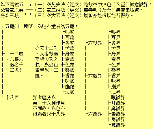 是故空中無色無受想行識無眼耳鼻舌身意無色聲香味觸法無眼界乃至無意識界