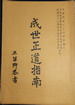 成世正道指南一書,於民國三十五年,丙戌歲,季春月,在安黴黃山後山芙蓉居,舉行彌羅法會,一百二十八年,時蒙 諸佛群仙降臨,光諭昭示廿字,(忠恕廉明德,正義信忍公,博孝仁慈覺,節儉真禮和,)一字一主宰一篇,揭其正義精詳,闡其玄真至理,詳其功果,究其本源,文淺而深出。…
